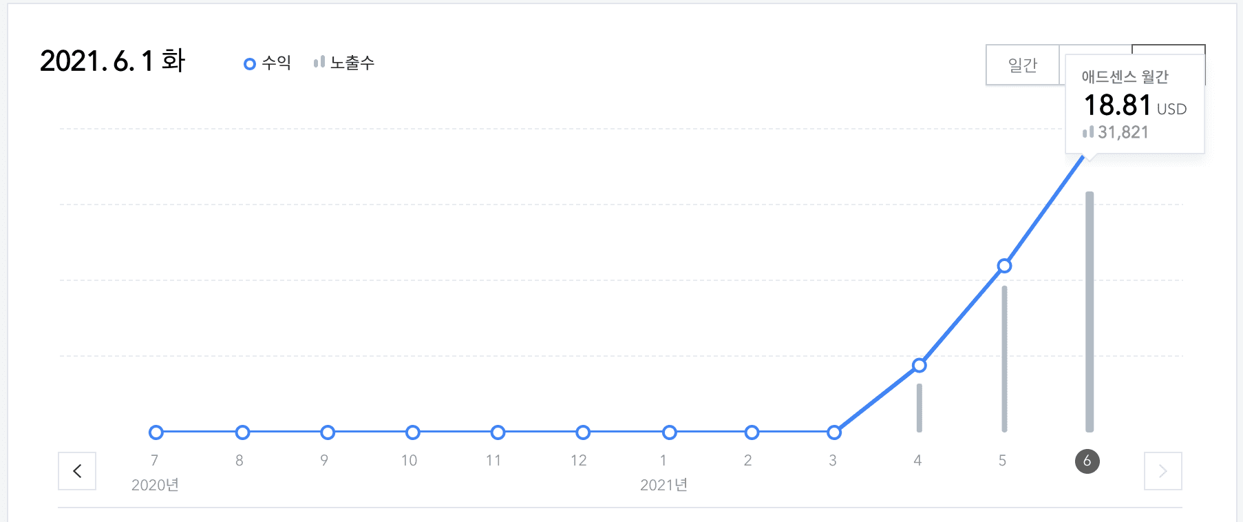 2021 06월 티스토리 기술 블로그 지표 및 애드센스 수익 분석하기