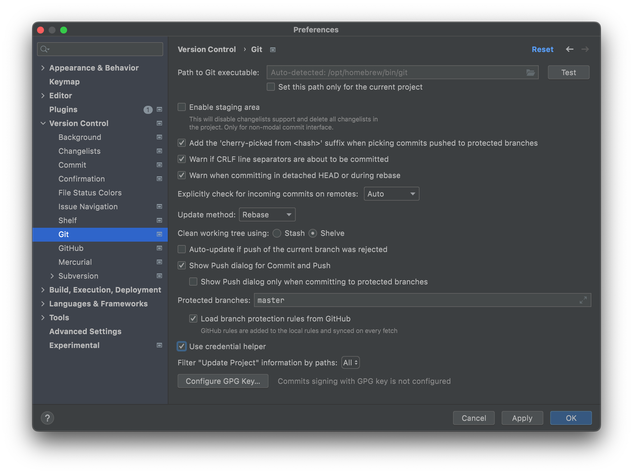 이 문제를 해결하는 방법은 stack overflow를 참고하였습니다. Invocation failed Unexpected end of file from server 에러가 발생하지 않게 하는 방법은 Git의 Use credential helper 옵션을 활성화 시키면 문제가 해결됩니다.
