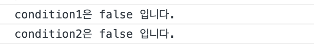 이번에는 조건문에 null과 undefined를 대입해본 예제 코드입니다. 이 코드의 실행 결과는 어떻게 나올까요?