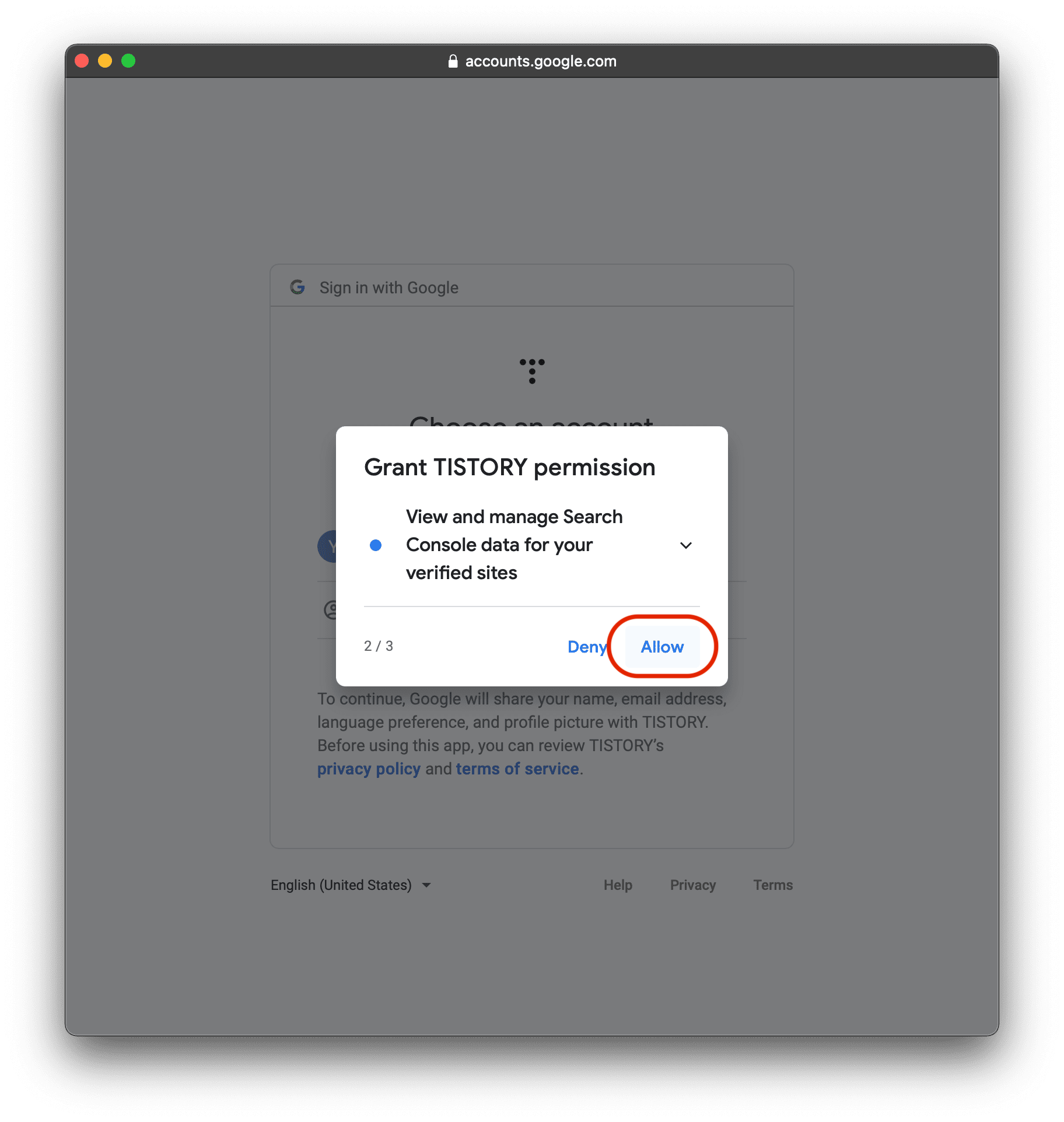 4. 티스토리 블로그와 연동할 구글 계정 선택하기