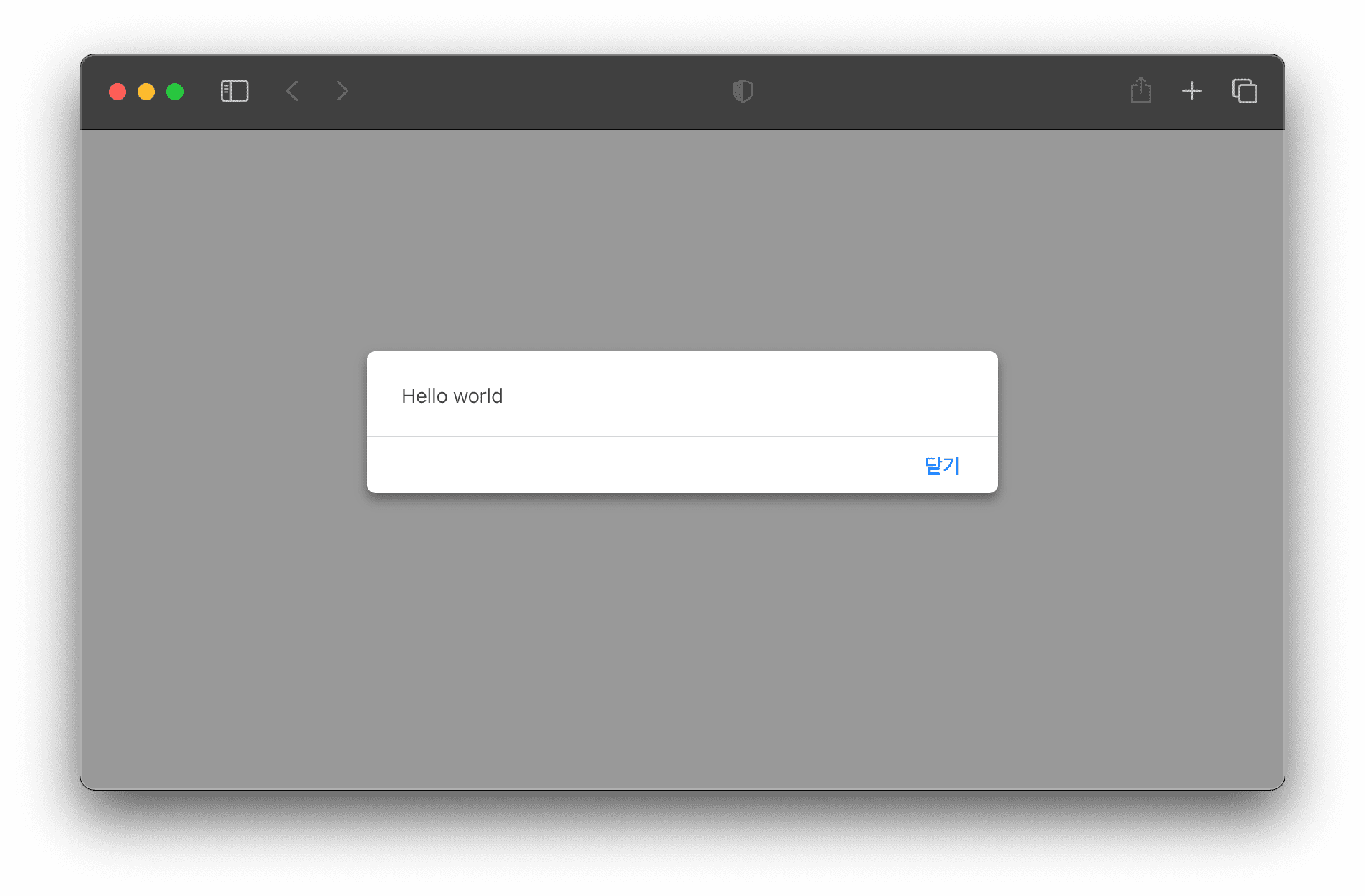 alert() 기능은 사용자에게 메시지를 전달할 수 있는 알림창을 띄웁니다. 다른 행동을 필요로 하지 않고 오로지 사용자에게 메시지를 전달하기 위한 알림 용도로 사용됩니다.