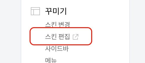 그리고 좌측 블로그 관리 메뉴 중에 스킨 편집 메뉴를 선택해주세요.