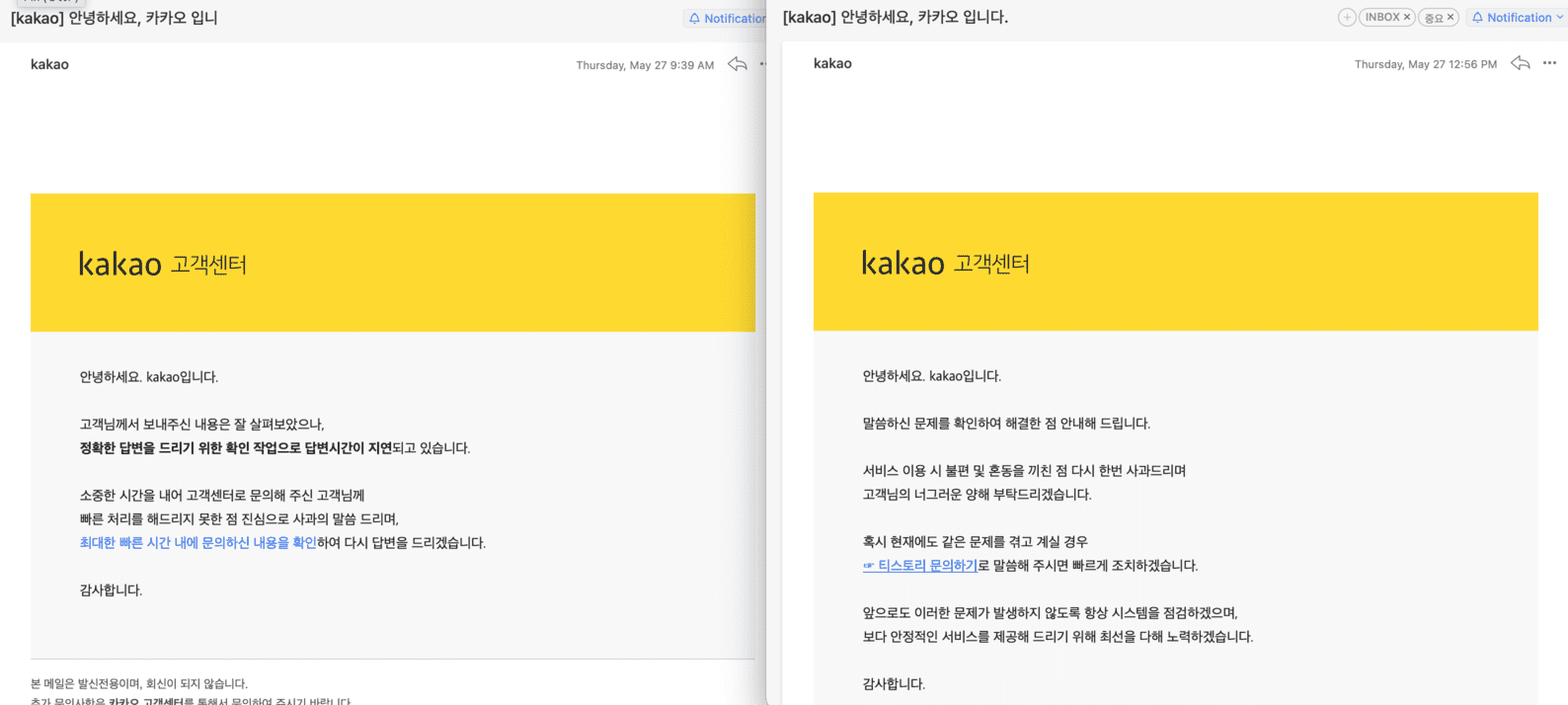 고객 센터 문의와 미온적인 대응